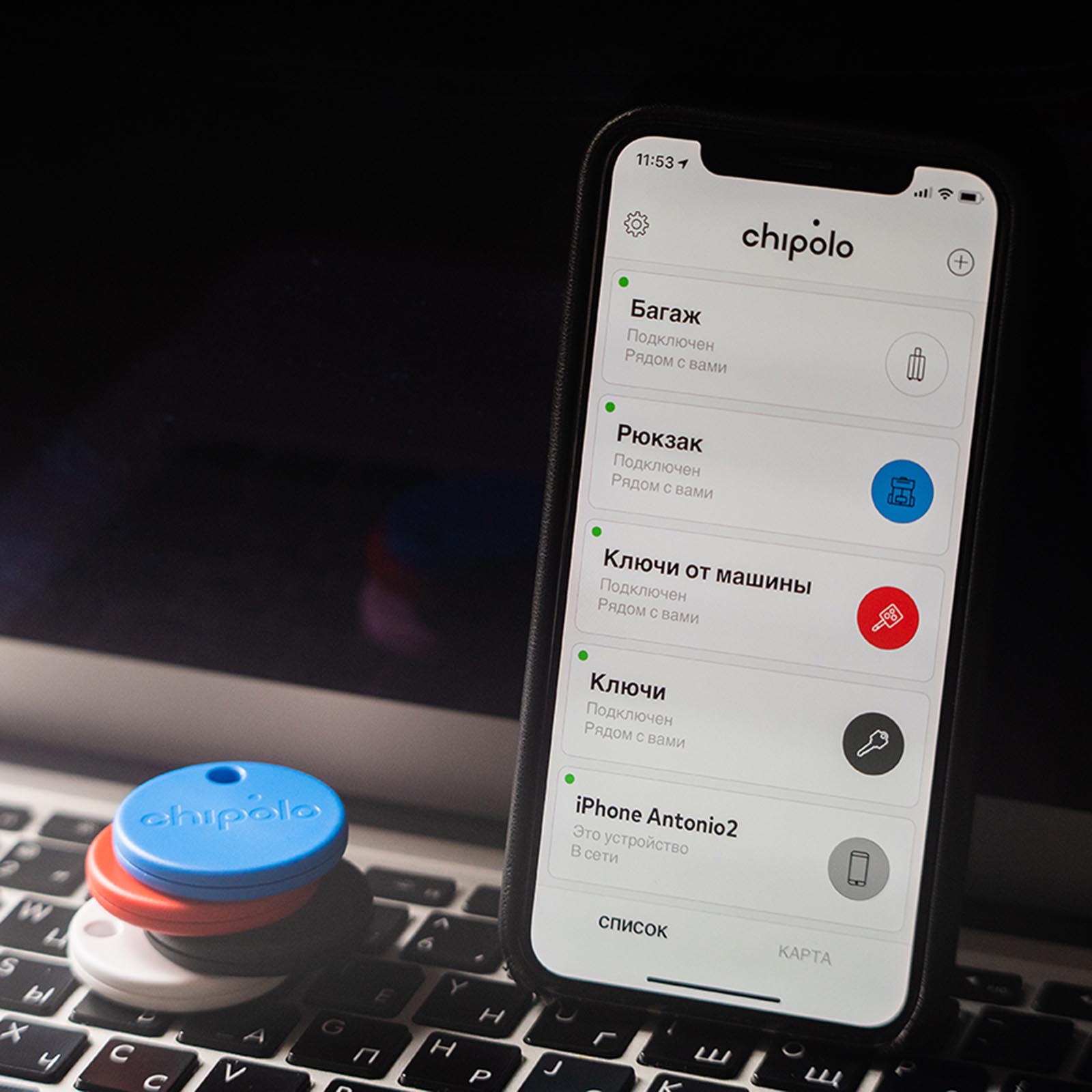 Приложение Chipolo русифицировано и обладает широким набором функций. Вы можете добавить в него сразу несколько брелков, каждый — для своей важной вещи.