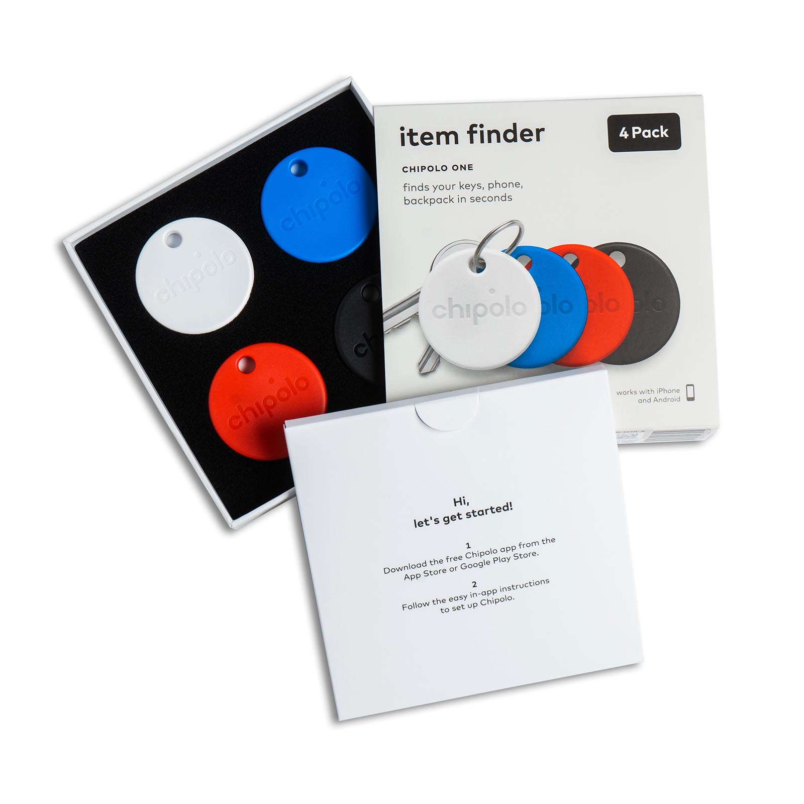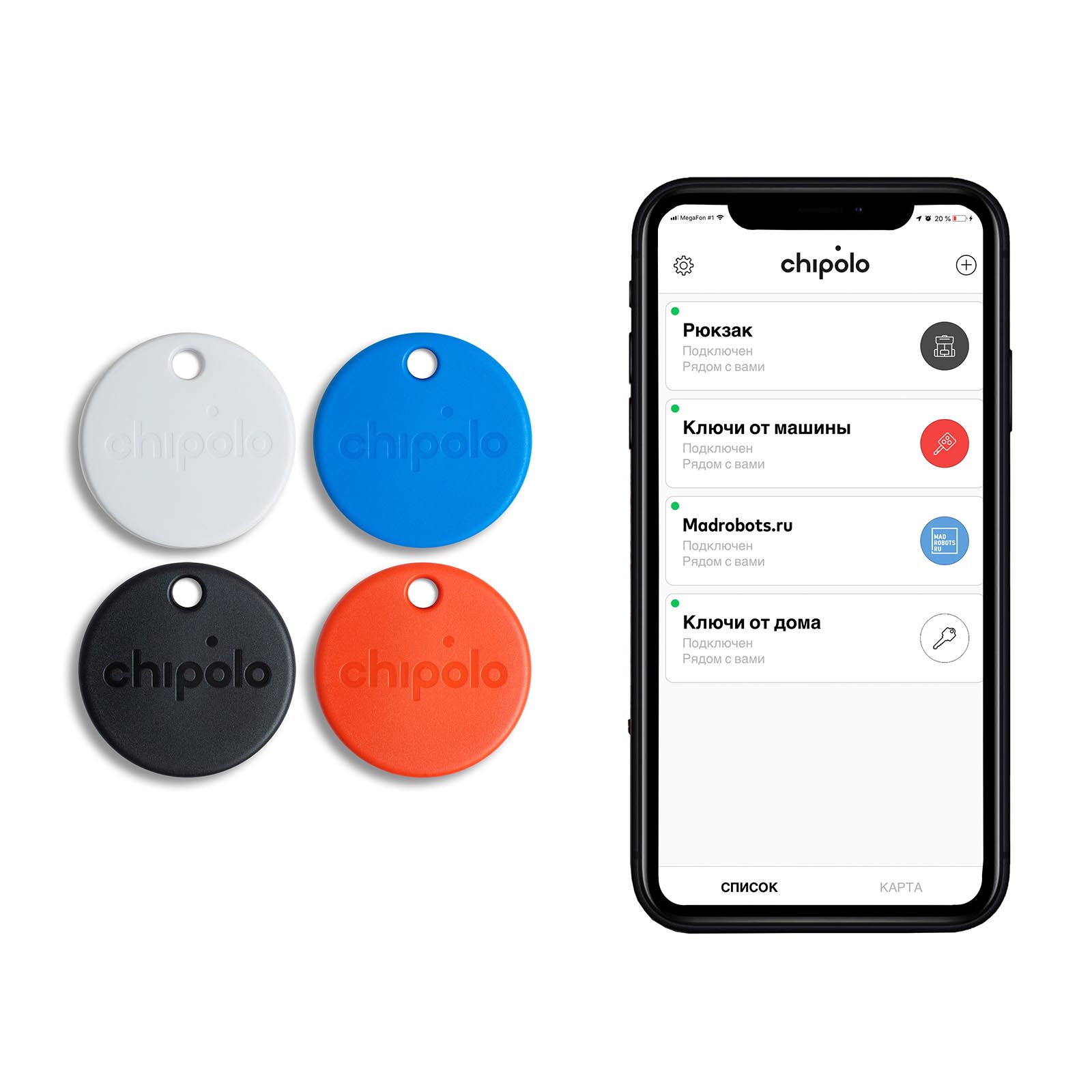 Комплект из 4 разноцветных умных брелков Chipolo One поможет найти ответы на главные вопросы. «Где ключи от квартиры? А от машины? Куда подевались кошелек и рюкзак? И в каком месте остался мой телефон?!»