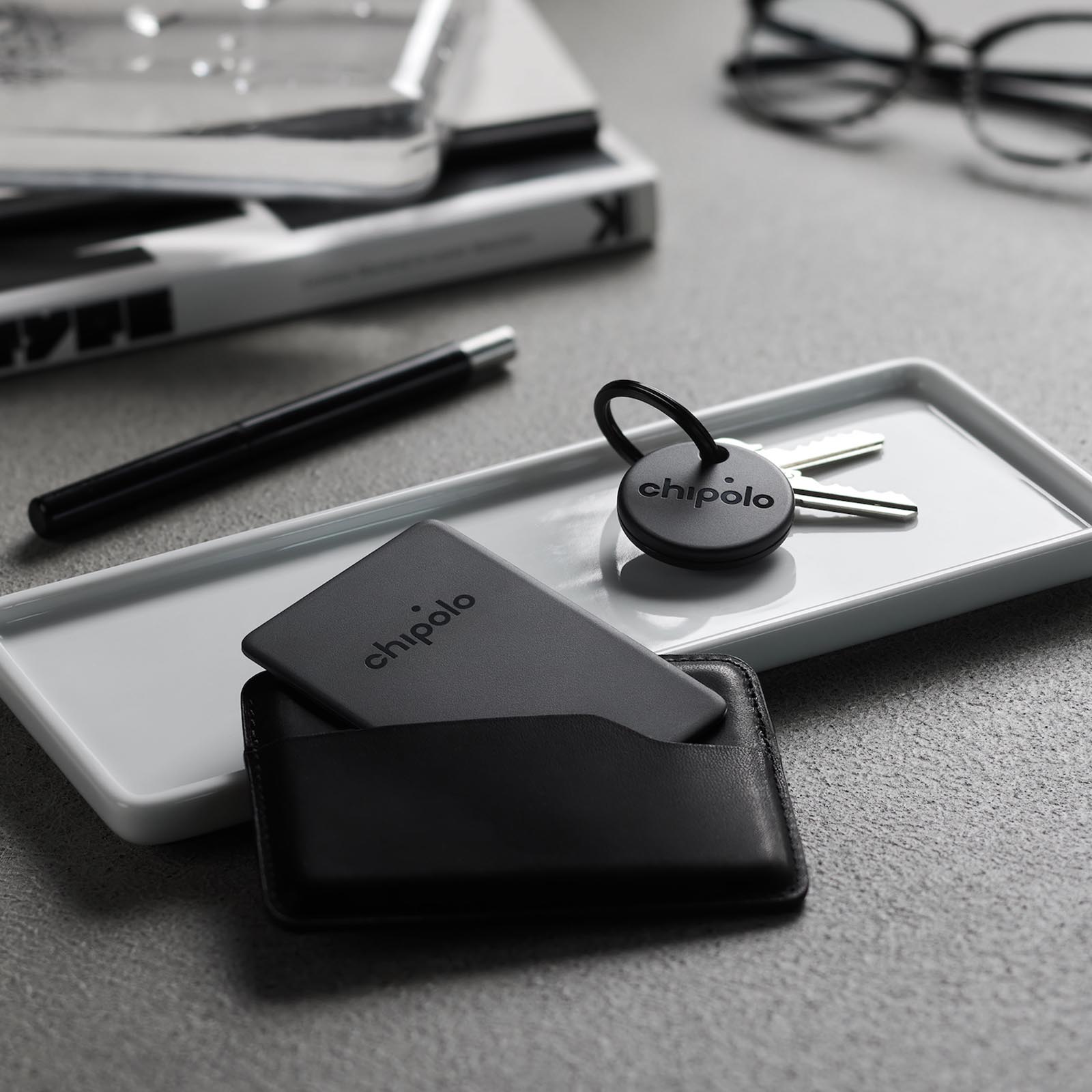 1. Вложите Chipolo CARD Spot в кошелек или сумку. Прицепите Chipolo ONE Spot к ключам.